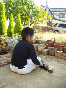 何も起こってないかのようにスパイクを磨いているもうひとりの弟